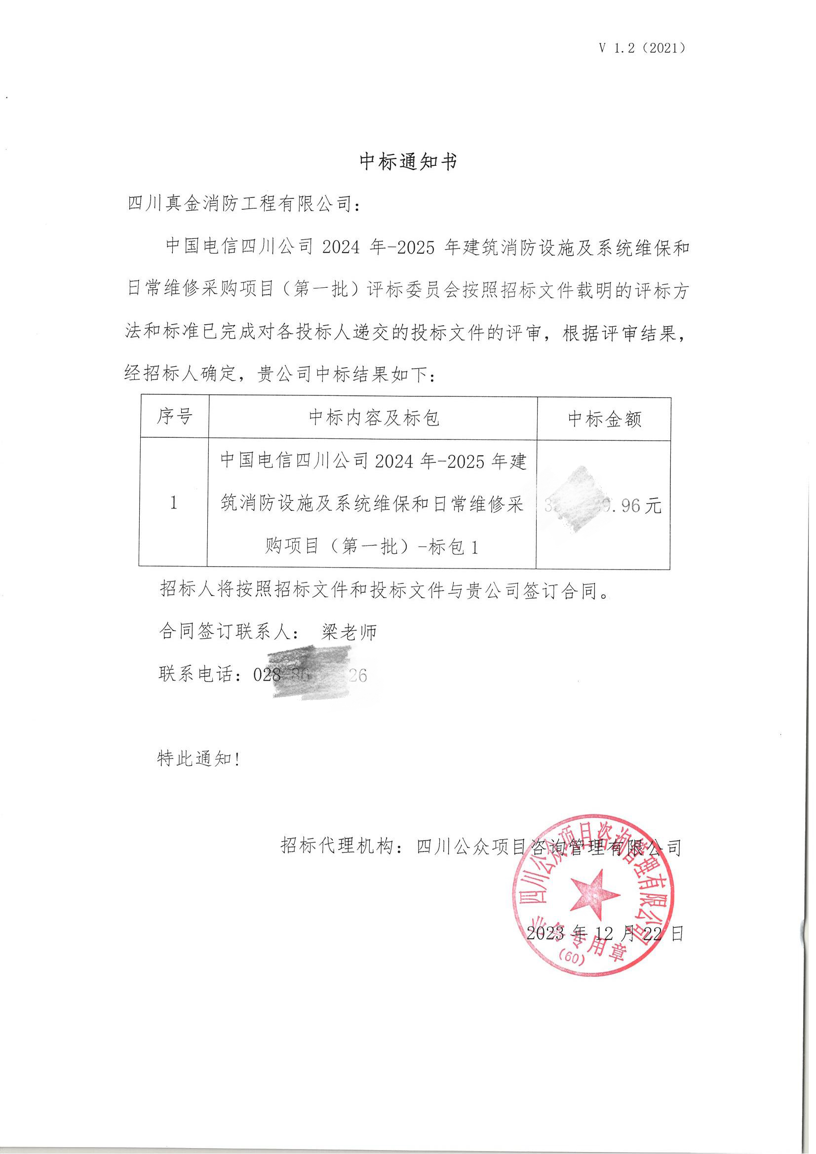 中国电信四川公司2022年直属区域消防设施维修项目中标