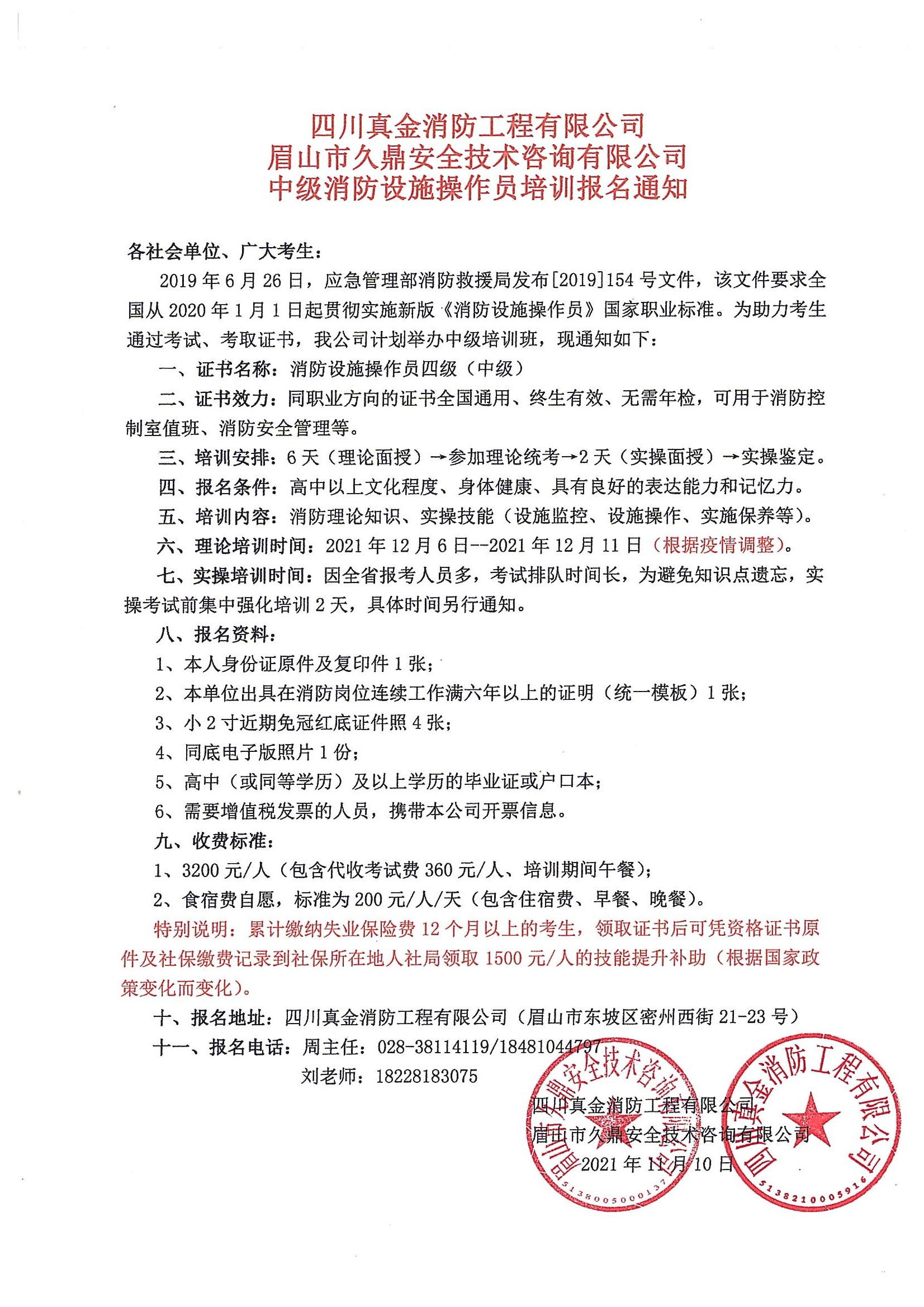 2022年第2期中级(四级)消防设施操作员培训开班啦