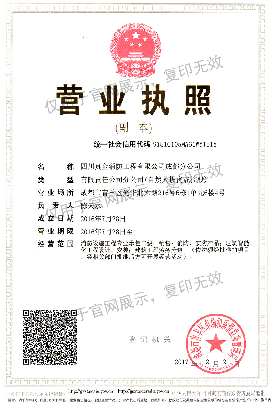 成都分公司营业执照